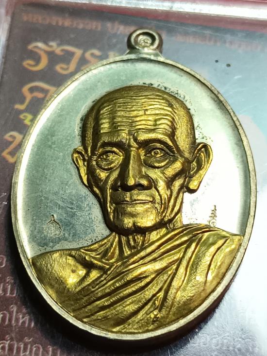 เหรียญหลวงพ่อรวย รุ่นรวยคูณทองเนื้ออัลปาก้าหน้ากากทองทิพย์ หลังตะกรุดทองคำหมายเลข1634 |