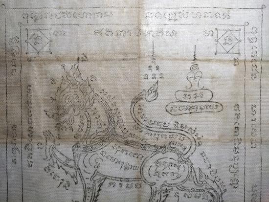 ผ้ายันต์ราชสีห์ เก่า ไม่ทราบที่ ไม่รู้วัดครับ |