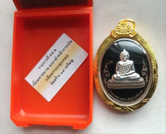 วัดใจเคาะเดียวแดงจ้า เหรียญหลวงพ่อสำเร็จศักดิ์สิทธิ์ เนื้อมหาชนวนลงยาดำหน้ากากเงิน เลี่ยมกรอบชุบทอง สร้าง19เหรียญ องค์นี้หมายเลข12 เคาะเดียวแดงจ้า |