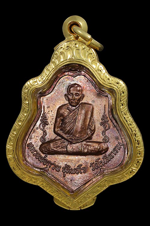 ( เคาะเดียว ).เหรียญหลวงพ่อกวย หลังยันต์ไตรสรณคมณ์ ปี 2521 ( สภาพสวย ) ตลับทอง |