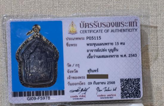 ขุนแผนพราย15ตน อ.เปล่ง บุญยืน สวยๆสมบูรณ์ตอนนี้หายากแล้วครับ มาพร้อมบัตรรับรองพระแท้
