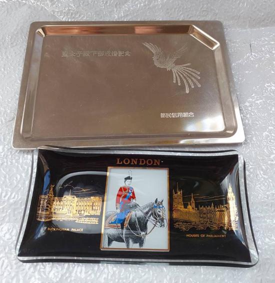 ***วัดใจ***ถาดแก้ว ลอนดอน พระราชวังบักกิงแฮม ของอังกฤษ กับถาดสแตนเลส ที่รำลึกพระราชพิธีเสกสมรสของสมเด็จพระจักรพรรดิอากิฮิโตะ ญี่ปุ่น |