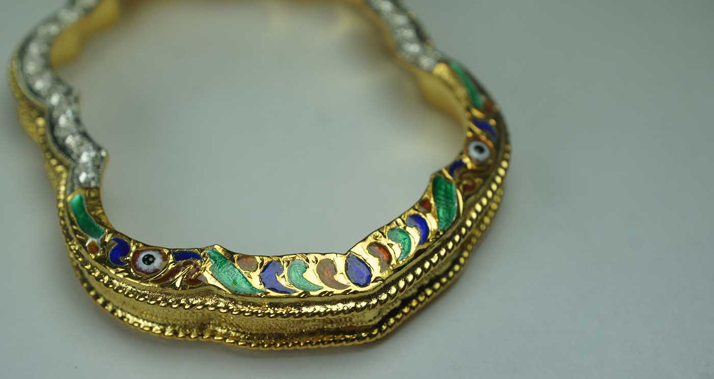 งานกรอบเงินแท้ ( มือหนึ่ง ) ชุบทองแท้ ใส่เหรียญ เสมา หลวงปู่ทิม หรือขนาดไกล้เคียง ยกซุ้ม หัวสิงห์ ฝังเพชร CZ ข้างเกลียวโปเต้ ยับทราย งานขึ้นมือ ( มาตรฐานงานตัวเดียวกับกรอบทองคำแท้ ) น้ำหนัก 10.06 กร |