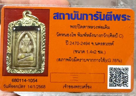 พระปิดตาหลังนางกวัก หลวงพ่อเดิมพร้อมบัตรรับรอง พระไม่มีทองแล้วนะครับ