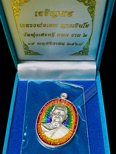เหรียญเจริญพร เนื้อเงินลงยา 5 สี ชุดกรรมการ หมายเลข ๓ หลวงพ่อเณร ญาณวินโย วัดทุ่งเศรษฐี กรุงเทพฯ