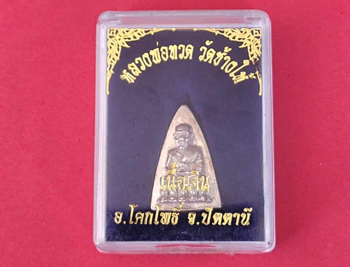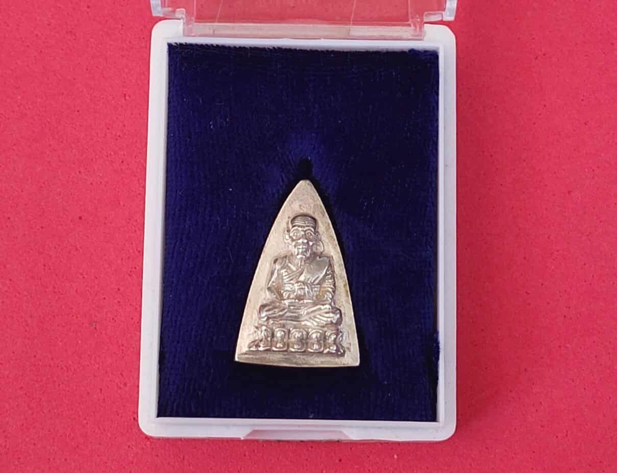 หลวงพ่อทวด วัดช้างไห้ เนื้อเงิน พิมพ์เตารีดเล็ก ปี 2536 อาจารย์นอง ปลุกเสก ไม่ผ่านการใช้ มีกล่องเดิม |