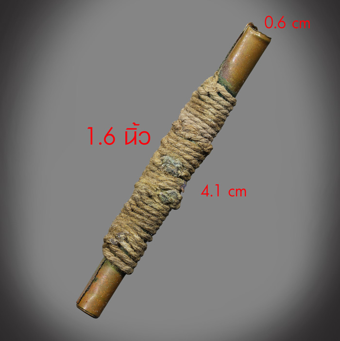 (เริ่มที่200)ดอกที่ 2 ตะกรุดสาริกา (ไม่ทราบที่) เนื้อทองแดง ถักเชือกเก่ามีอายุ ขนาดตะกรุดยาว 1.6 นิ้ว |