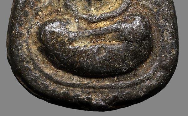 เหรียญหล่อโบราณ พิมพ์หยดน้ำ หละงยันต์ เนื้อตะกั่วเก่า(ไม่ทราบที่) ขนาด ฐาน 1.9 cm สูง 2.7 cm |