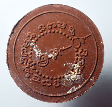 พระผงสุริยันต์ จันทรา รุ่น 2 ปี 49 ท่านสรรเพชร จัดสร้าง รูปแบบย้อนยุค พิมพ์ 4 เซน เนื้อผงว่านแดง หลัง ยันต์เอียง