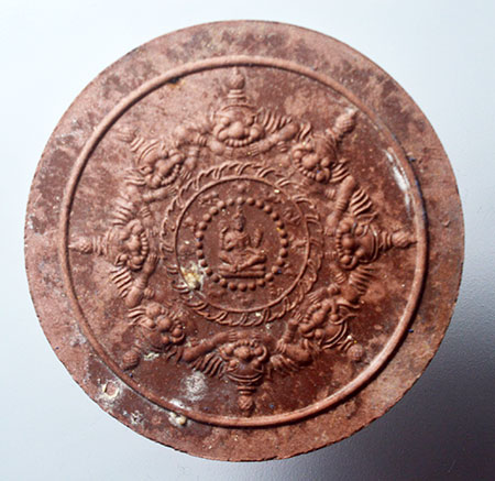 ชื่อพระเครื่อง พระผงสุริยันต์ จันทรา รุ่น 2 ปี 49 ท่านสรรเพชร จัดสร้าง รูปแบบย้อนยุค พิมพ์ 4 เซน เนื้อผงว่านแดง หลัง ยันต์เอียง