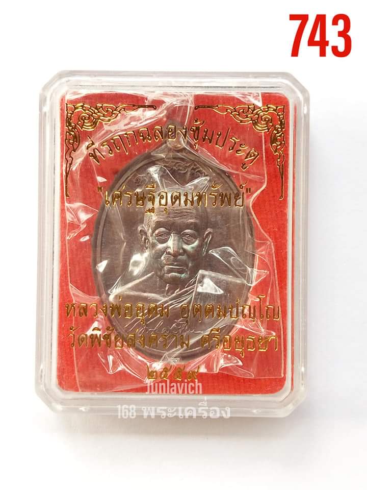 เหรียญเศรษฐีอุดมทรัพย์ หลังรัศมีพรหม เนื้อทองแดง เวลาเอียงเหรียญ จะเห็นเป็นเหลือบๆสีม่วง-รุ้งๆนิดๆ หมายเลข 743 เลข 3 หลักครับ สวยงามครับ พิธีพุทธาภิเษกวันที่ 15 ตุลาคม 2559 ณ.อุโบสถวัดพิชัยสงคราม ประกอบพิธีพุทธาภิเษกเดี่ยวโดย พระครูวิชัยกิจจารักษ์ (หลวงพ่ออุดม) วัดพิชัยสงคราม เวลา 14.00 น.