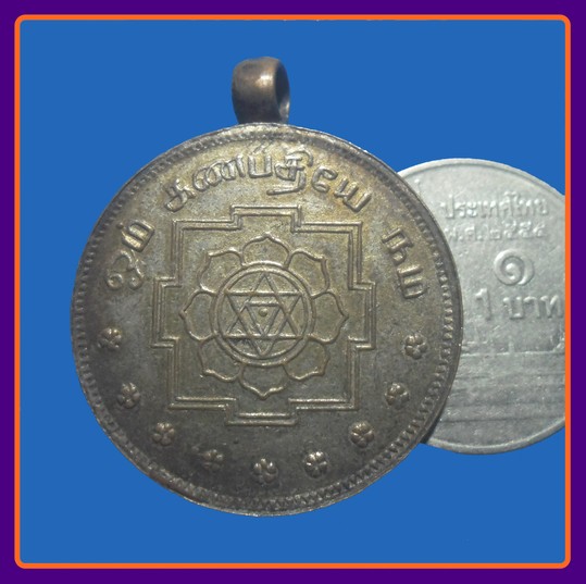 ยุคแรก หูเชื่อม(ขวาง)-200-บล็อคอินเดีย เหรียญพระพิฆเนศ หลังยันต์ออกวัดแขก สีลม เหรียญทองแดงกะไหล่เงิน |