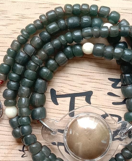 วัดใจ...สร้อยลูกปัดเก่า สีดำอมเขียว+เมฆสิทธ์เลี่ยม 3ห่วง ไม่ทราบที่ ค่ะ |