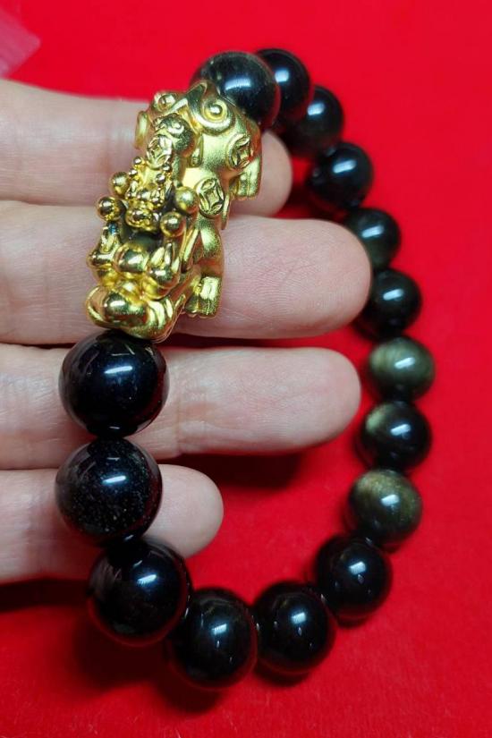 ***วัดใจ***สร้อยข้อมือปี่เซี๊ยะเงินแท้ชุบทอง (ตัวใหญ่) หินสะท้อนแสง หินนำโชค13 มิล |