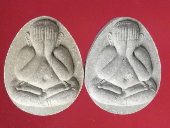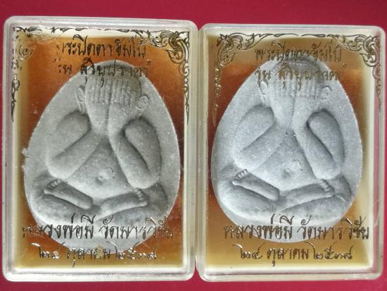 พระปิดตาสุริยุปราคา พิมพ์จัมโบ้ เนื้อผง หลวงพ่อมี วัดมารวิชัย พระนครศรีอยุธยา ปี ๒๕๓๘ ฝังตะกรุดเงิน พร้อมกล่อง 2 องค์ |