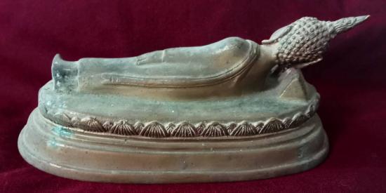พระบูชา ปางไสยาสน์ ขนาดฐานรีประมาณ 8 นิ้ว 2 หุน X 3 นิ้ว 6 หุน ประทับนอนบนบังลังก์บัวหงาย เนื้อทองเหลืองเก่าคร่ำ เกิดสนิมหยกประปราย ผิวหิ้ง ตามุก สภาพสวยตามรูป ส่งฟรีทั่วไทย รับประกันตามกฎครับ |