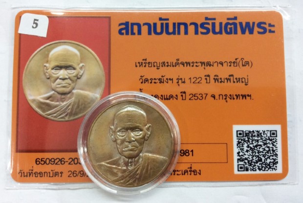 วัดใจต่ำกว่าทุน@ ทีเดียว50องค์^เหรียญสมเด็จพุฒาจารย์ (โต) วัดระฆัง (2.6 cm บล้อกกษาปณ์.)รุ่นอนุสรณ์ ครบรอบ 122 ปี ปี 2537 เนื้อทองแดง สวยมากๆ |