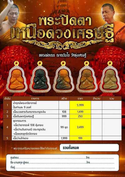 พระปิดตาชุดกรรมการ ราคาจองออกวัด 3499!!!