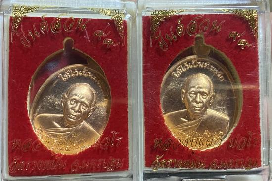หลวงปู่แผ้ว ปวโร รุ่น ยันต์สวน ๙๙ เนื้อทองเเดง (สวย 2 เหรียญค่ะ ) #1 |