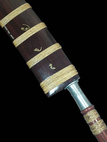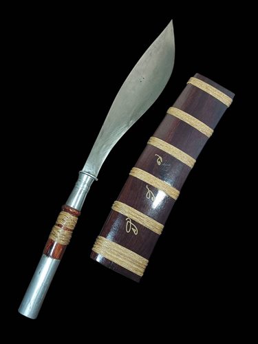 มีดหมอ ต้ามไม้ ฝักไม้ ถักทอด้วยหวายลูกนิมิตร(ฝักจารอักขระยันต์) ไม่ทราบที่ ขนาดยาวใหญ่ 23 นิ้ว
