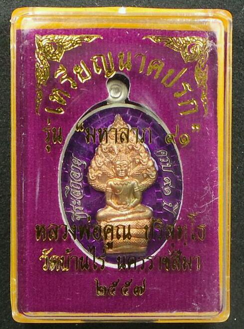 .........สภาพสวย..........เหรียญนาคปรก หลวงพ่อคูณ รุ่นมหาลาภ91 เนื้ออัลปาก้าลงยาสีม่วงหน้ากากนวโลหะ กรรมการ สภาพสวย หมายเลขสวยสวย 768 สวย+พร้อมกล่องเดิม |