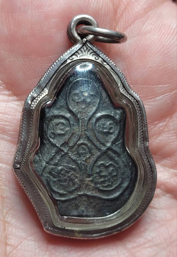 เลี่ยมเงินงานมือจับขอบมาเดิมๆ พระมีชำรุดด้านล่างซ้ายนะคะตามรูป