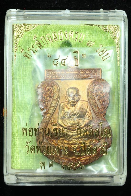 **เหรียญสวย หายากเคาะเดียว ** เหรียญ ที่ระลึกฉลองครบ 7 รอบ 84 ปี หลวงพ่อเขียว วัดห้วยเงาะ ปัตตานี ปี 2556 เนื้อทองแดง/เบอร์ |