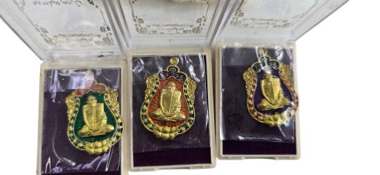 เหมา เหรียญเสมา กนกดอกบัว ฐานบัว รุ่นรวยพันล้าน หลวงปู่แสง วัดโพธิ์ชัย จ.นครพนม เ เลข 115 ทั้งหมด เหรียญสวยมาก พร้อมกล่องเดิม |
