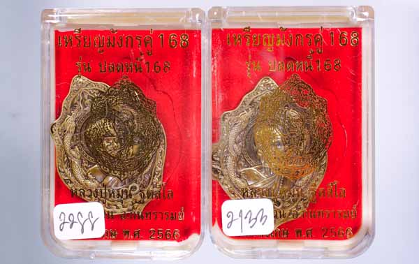 *ทีเดียว 2 องค์ ทองทิพย์รมซาติน เข้มขลังมาก เหรียญมังกรคู่168 รุ่นปลดหนี้168 หลวงปู่หมุน ฐิตสีโล ออกวัดบ้านจาน ปี66 เคาะเดียวแดง* |