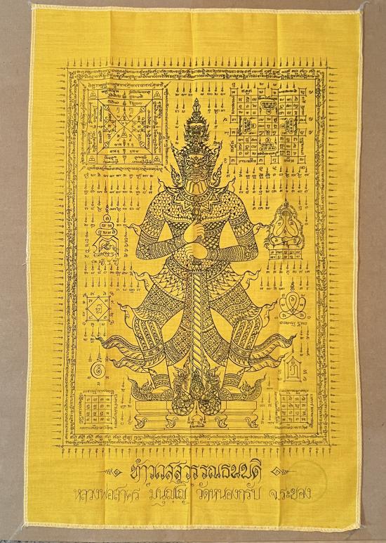 ผ้ายันต์ท้าวเวสสุวรรณธนบดี สีเหลืองเล็ก หลวงพ่อสาคร มนุญโญ วัดหนองกรับ จ.ระยอง ปี ๒๕๕๖