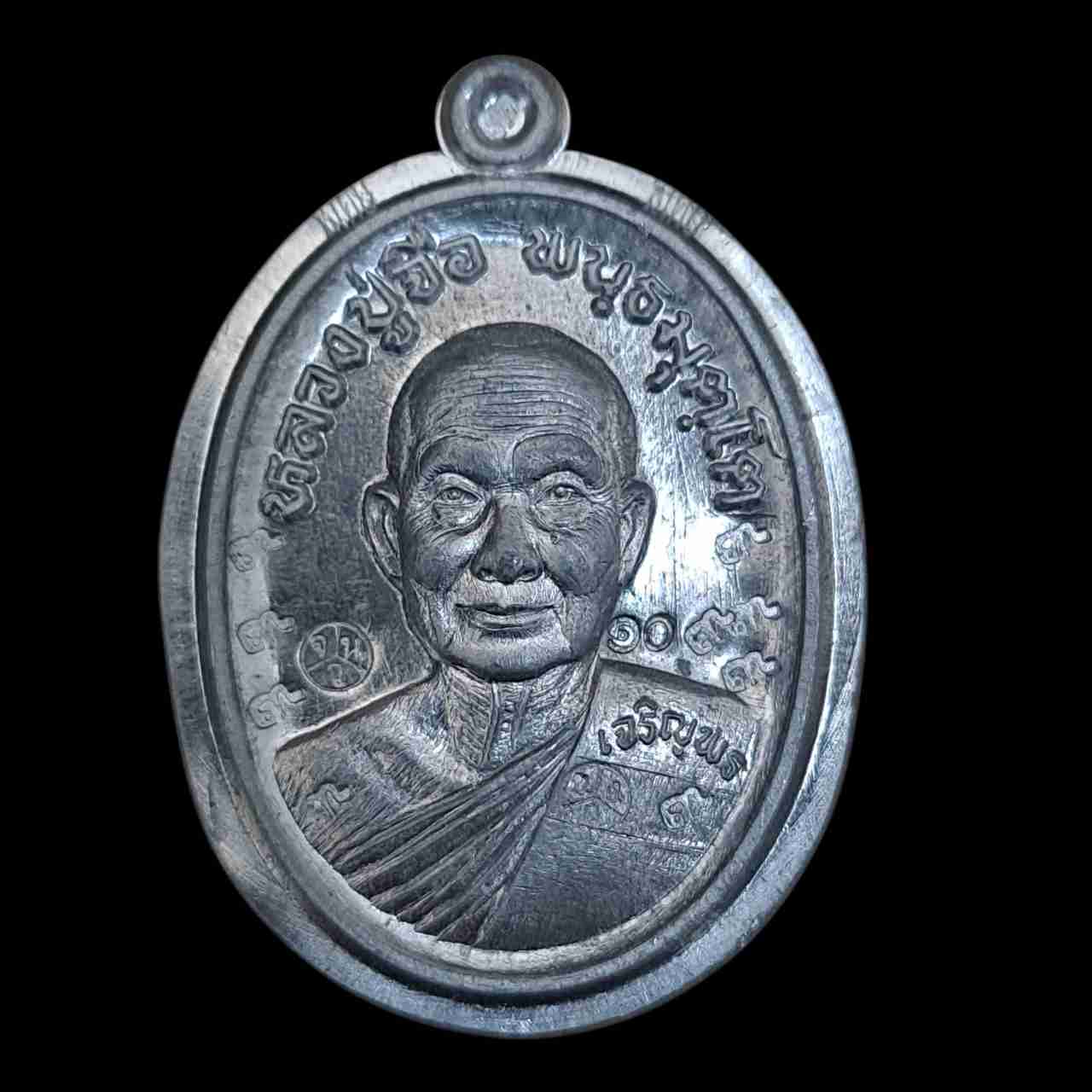เหรียญเจริญพร ออกวัดแจ้งนอก เนื้อตะกั่วไม่ตัดปีก ตอก ๙ รอบ พิเศษ หมายเลข ๑๐ |