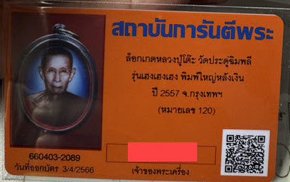 ล็อกเกตหลวงปู่โต๊ะ รุ่นเฮงเฮงเฮง วัดประดู่ฉิมพลีสร้าง ปี2557 พิมพ์ใหญ่หลังเงิน หมายเลข 120 พร้อมบัตรกรอบพระและกล่อง หายากครับ ด้านซ้ายมีสีกะเทาะตามรูป |