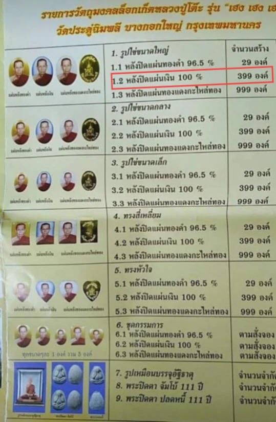 ล็อกเกตหลวงปู่โต๊ะ รุ่นเฮงเฮงเฮง พิมพ์ใหญ่หลังเงิน |