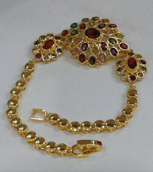 เทขาดทุน+ กำไลแขนพลอยนพเก้ายาว 7.5นิ้ว งานจิวเวลลี่ชุบทองแท้ |