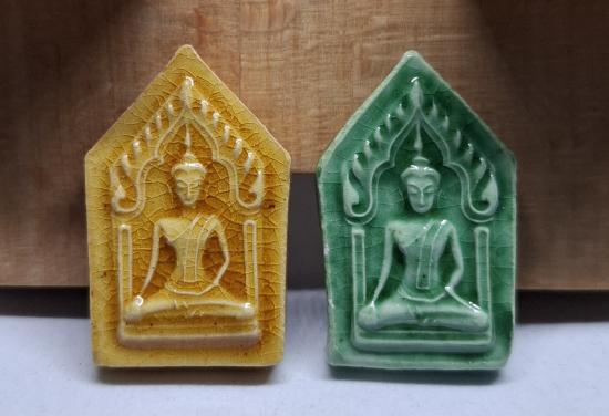 องค์นี้เป็นพระพิมพ์ขนาดจิ๋ว มีขนาด 1.7 X 2.7 c.m. เคลือบสีเขียวด้านหน้า หลังยันต์หมึก มาพร้อมกล่องเดิม