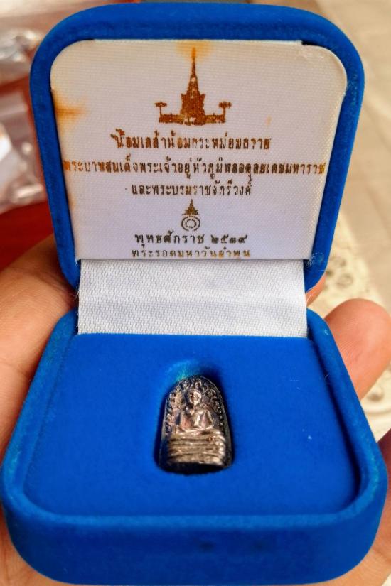 พระรอดมหาวันลำพูน "รุ่นน้อมเกล้าน้อมกระหม่อมถวาย" พระบาทสมเด็จร. 9 และพระบรมราชจักรีวงศ์ปี 2539 เนื้อเงิน พร้อมกล่องเดิม
