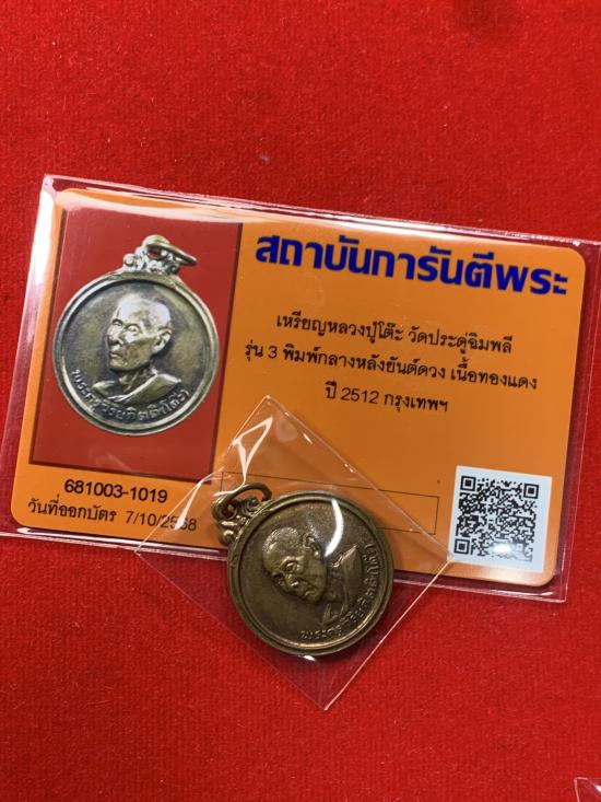 พระหลวงปู่โต๊ะ ปี 12 เนื้อทองแดง กลมกลาง สภาพสวยจมูกโด่ง มาพร้อมบัตรรับรองครับ