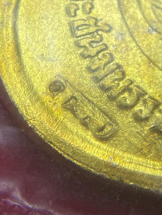 เหรียญเสมา ๓ รอบ เนื้อกะไหล่ทอง ตอกโค้ด สว ๒ โค้ด ซองเดิม (3) |