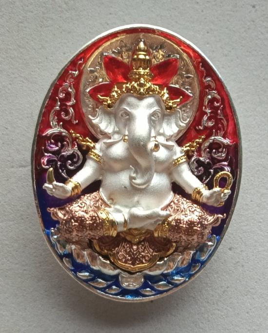 วัดใจเคาะเดียวแดงจ้า เหรียญหล่อพุทธศิลป์พระพิฆเนศ รุ่นห้ามจนตลอดชาติ เนื้อบรอนซ์ชุบ3K เหรียญลงยาสีรุ้ง เคาะเดียวแดงจ้า |