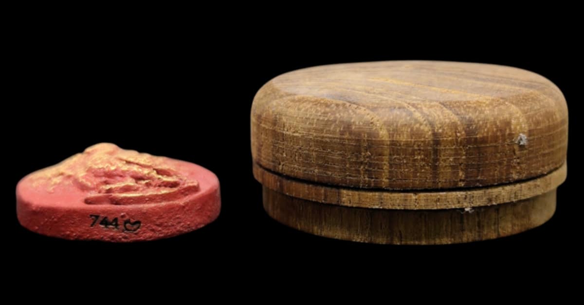 พญายูงคำ รุ่นแรก เนื้อแดงปัดทอง และ ตลับไม้สีผึ้งเนื้อหอม รังผึ้งร้าง ขวางเดือนขวางตะวัน รุ่นแรก ฝังอิ่น ตะกรุด ในเมตตาบารมี เจ้าปู่จั่นต่า กาวิสาละ พญานกยูง ขนาดเท่าเหรียญสิบบาท
