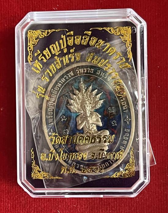 เหรียญปู่อือลือนาคราช รวย สำเร็จ สมปรารถนา วัดสามัคคีธรรม บึงโขงหลง บึงกาฬ เนื้ออัลปาก้า ลงยาสีปีกแมลงทับฟ้า เลข 12 |