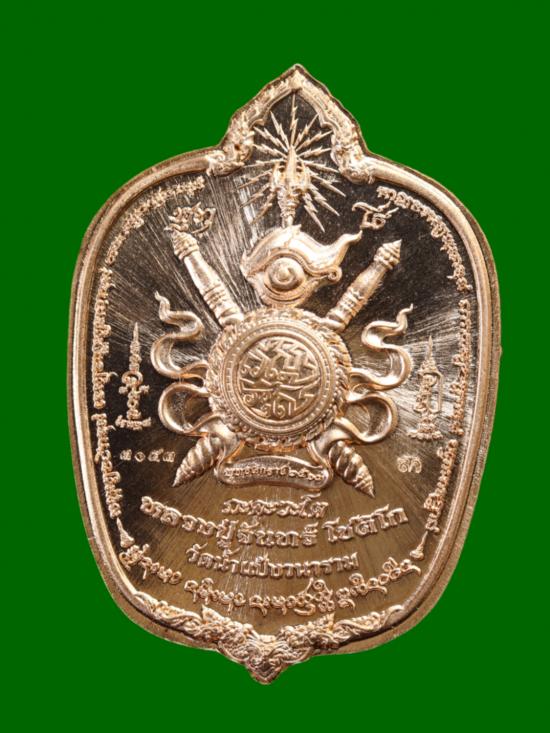 เหรียญมหาราชชนะมาร ครูบาจันทร์ เนื้อทองแดง เลข ๓๐๕๓ วัดน้ำแป้ง พะเยา พร้อมกล่อง |
