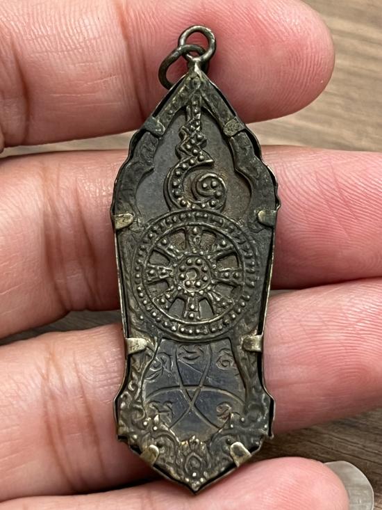 เหรียญ25 พุทธศตรวรรษ ปี2500 เลี่ยมกรอบเก่าธรรมจักร สภาพผ่านใช้สึก