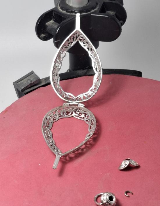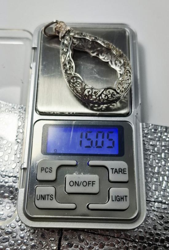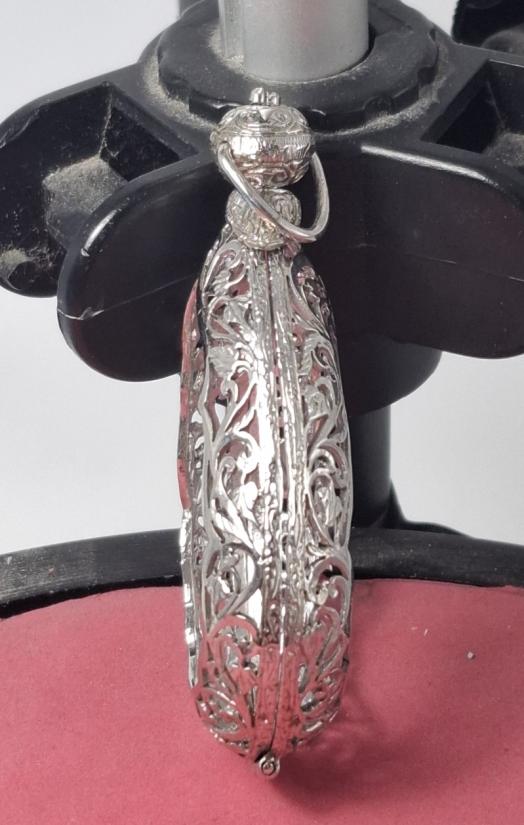 ตลับเงิน 92.5 % ชุบทองคำขาว ฉลุลาย งานตัวอย่าง เหลือ 1ใบ ใส่พระตามภาพ