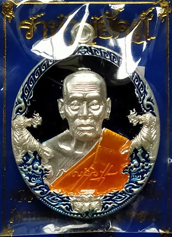 เหรียญหลวงพ่อพัฒน์ วัดห้วยด้วน "รุ่นราชาพยัคฆ์ปี" 2563 เนื้อเงินลายเสือ ลงยาน้ำเงิน ลงยาจีวร เลขสวย |