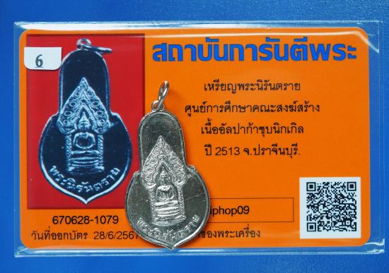 เหรียญนิรันตราย ศูนย์การศึกษาคณะสงฆ์ วัดหลวงปรีชากูล ปราจีนบุรี ปี พ.ศ.2513 เนื้ออัลปาก้าชุบนิเกิล พร้อมบัตรรับรอง