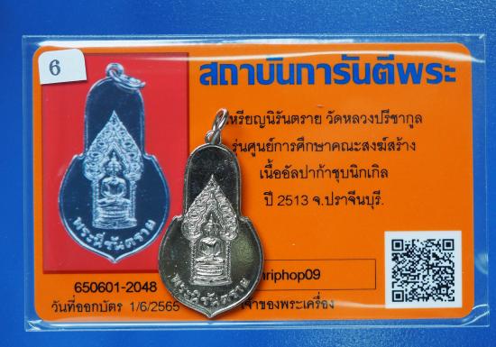 รายละเอียด เหรียญนิรันตราย ศูนย์การศึกษาคณะสงฆ์ วัดหลวงปรีชากูล ปราจีนบุรี ปี พ.ศ.2513 เนื้ออัลปาก้าชุบนิเกิล พร้อมบัตรรับรอง