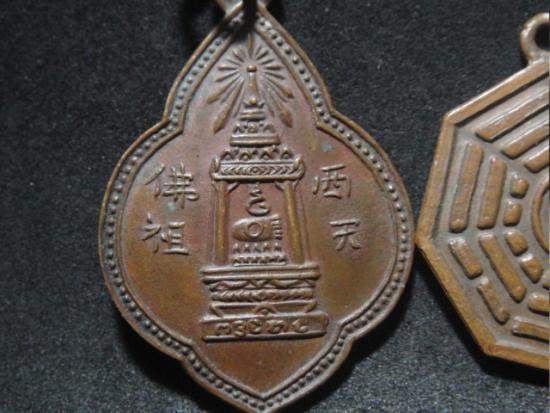 วัดใจเคาะเดียว.......100....... เหรียญ ยันต์แปดเหลี่ยม (โป๊ยข่วย) กันชง + เหรียญพระพุทธบาท(สมเด็จพระพุฒาจารย์นวมปลุกเสก)ห่วงเชื่อมเดิมๆ รวม 2 เหรียญ |