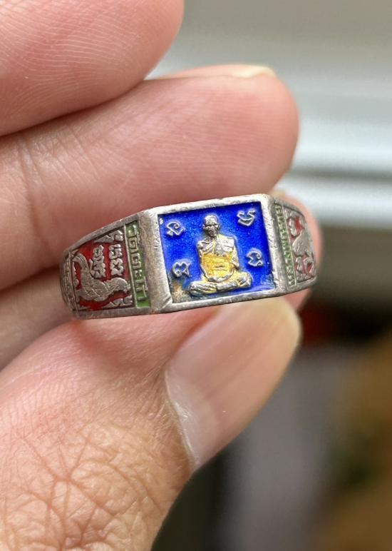 เคาะเดียว..แหวนหลวงพ่อรวย วัดตะโก จ.อยุธยา รุ่นเงินไหลมา ปี60 เนื้อเงินลงยา ไซส์ 54 พร้อมกล่องเดิม