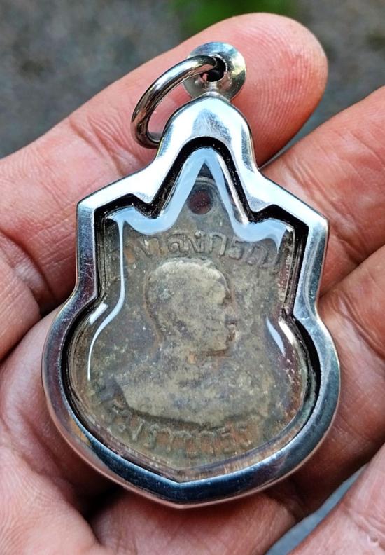 เหรียญ ในหลวงรัชกาลที่ 5 เสด็จกลับจากยุโรป ปี 2450 และบัตร gpra เลี่ยมกันนำ้ตลับพุก |